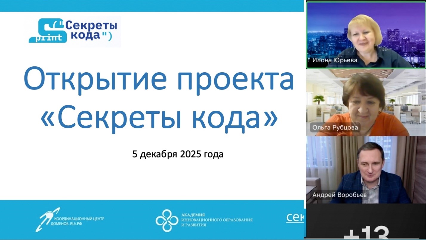5 декабря дан старт второму сезону уникального образовательного проекта «Секреты кода», организованного Координационным центром доменов .RU/.РФ совместно с Академией инновационного образования и развития, при информационной поддержке Фонда «Разумный интернет» (домен .ДЕТИ). Проект направлен на развитие навыков программирования, повышения знаний в области цифровых технологий и популяризацию цифровых профессий среди подростков.